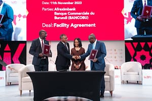 Rene Awambeng, Global Head, Client Relations, signed for Afreximbank while Sylvere Bankimbaga, Deputy Managing Director, signed on behalf of BANCOBU during a ceremony witnessed by Audace Niyonzima, Minister of Finance, Budget and Economic Planning, of Burundi.